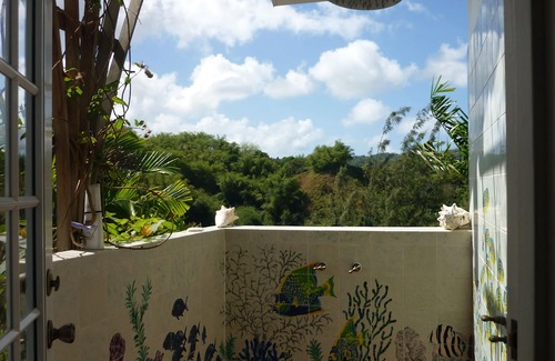 Its sole position on the hilltop gives 360 degree views. You can walk to Arnos Vale Beach, one of the island’s best snorkeling beaches, and it is a 25 min. drive to the airport and the many tourist activities on Tobago’s south. Silja, our manager, lives onsite. You’ll love the inside/outside living.