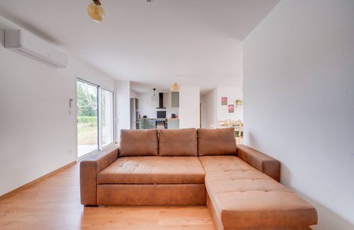 Cet écrin de verdure est composé de 3 chambre ainsi que d'un espace de vie idéalement conçu avec de grands volumes, idéal pour un séjour en famille ou entre amis.