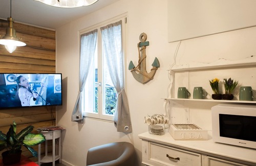 The mini apartment is located on the ground floor of the building and is ideal for 2 people, 3 if there is a child.