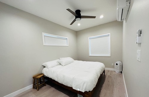 Welcome to your home away from home in the heart of Azusa, CA! Our 2 bedroom, 1 bath house is the perfect blend of comfort and style. Your stay includes 2 comfortable king size mattresses, mini putting green with included putter, 3 zone mini split heating and cooling, in-unit washer and dryer, outdoor pellet BBQ grill, outdoor seating, private yard, private entrance, RV parking (notify in advance), free parking on premise or free street parking, and Tesla charger (notify in advance).