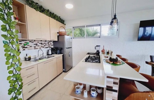 Guests or guests can access all spaces within the property made for their comfort and delight such as the Kiosk of hammocks, the terrace of natural grass for exercise, stretching, terrace with chairs for sun or reading, gazebo for unforgettable evenings, Jacuzzi with hot tub, swing, orchards, direct access to the garden with spectacular view of the mountains and the sea, unique in Panama, disconnect from the routine, breathe in the fragrant smell of pine trees and feel the feeling of being in the Swiss Panic Alps,