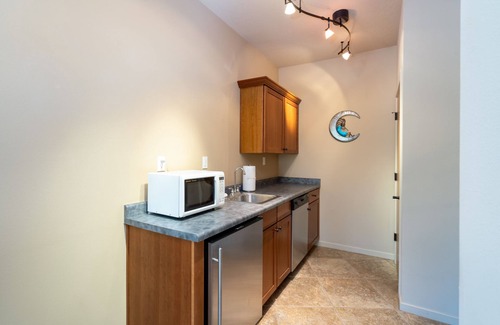 Just minutes from downtown Santa Fe, Moon Shine Manor sleeps six people comfortably and is built in the Pueblo Revival adobe style. A light, bright, open-concept living area features tiled floors, wood ceilings (complete with viga beams), comfortable furnishings, a corner fireplace and large flat-screen cable TV. Plenty of windows and skylights let in natural light and offer inspiring views of the surrounding terrain. Gather at the large, farmhouse-style dining table for six to enjoy a family meal or game night. Conveniently close to the dining room, the spacious kitchen features a kitchen island and granite countertops, while the expansive wood cabinets are well stocked with all the cookware, dinnerware, and utensils you’ll need to prepare your favorite Mexican dishes (or heat up leftovers from one of the many culinary delights the area has to offer). A large, wraparound balcony above and covered patio below offer spacious retreats where you can sit and enjoy sunny New Mexico's mountain views by day and starry skies by night while you grill up some steaks for fajitas. Downstairs, Moon Shine Manor’s second living space, complete with kitchenette and cozy workstation, is sure to be a hit with the kids and the site for many movie nights.