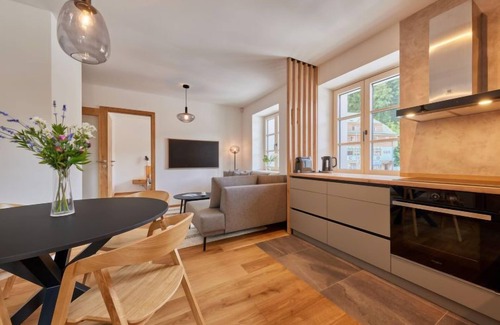 "Mountain Bliss Lounge & Grill Terrace", 2-room apartment 42 m2 on 2nd floor. Spacious and bright, beautiful and luxurious furnishings: living/dining room with 1 double sofabed (140 cm, length 200 cm), dining table and satellite TV (flat screen). 1 room with 1 double bed (180 cm, length 200 cm). Kitchenette (oven, dishwasher, 4 induction hot plates, toaster, kettle, microwave, freezer, electric coffee machine). Shower/bidet/WC. Heating. Large terrace 22 m2. Terrace furniture, electric barbecue (portable). Facilities: washing machine, children's high chair, baby cot. Internet (WiFi, free). Parking. Please note: suitable for families. Non-smoking house. 1 small pet/ dog allowed. Storage room for skis and 3 bikes (incl. plug for e-bike charging), ski boot dryer.