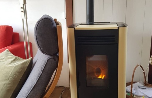 The kitchen is equipped with an oven, a stovetop, and a refrigerator, as well as a coffee maker and cookware. Bathroom amenities include towels and toilet paper. And because there's a washing machine, you can go a bit lighter on your packing. Other amenities include a fireplace, bed sheets, and a dining table.