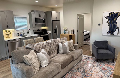 Make yourself at home in this luxuriously appointed 1-bedroom Oxford retreat. This cozy condo features a welcoming king bed, zoned heating/AC, crazy fast WiFi, 55” bedroom TV, 65” living room TV, mobile charging stations, fully stocked kitchen, coffee maker, and more! The bathroom comes equipped with a hairdryer, hygiene items, fluffy towels, and spacious shower. Enjoy all that Oxford has to offer, while being just off the Ole Miss campus when you stay at our place!