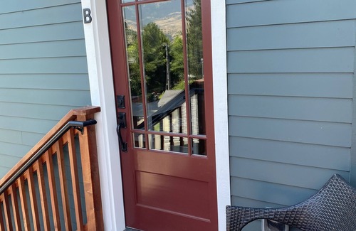 This is a beautiful new upstairs 3 bedroom flat with oak hardwoods floors, granite counters, and new appliances. There is a shared laundry room with a washer and dryer. We offer a cozy living room to relax after your busy day with a sleeper sofa, flat screen TV, and air conditioning for those warm days. There is a fully equipped kitchen with stainless appliances, microwave and dishwasher. If you are here on business there is wireless internet and a desk. This wonderful new top level condo style apartment has a quaint open floor plan with sliding doors that lead out onto your own balcony for outside dining overlooking the North Hills of Ashland. The master bedroom has a King bed, attached bathroom and smart TV. Second room has a queen bed with smart tv. The third room has a twin trundle bed and smart tv. This home is located in a prime location just a 5 minute walk to the popular Shakespeare Festival. With tons of boutiques, both local and well-known stores, antiques, parks, galleries, fabulous restaurants whether for happy hour or fine dining, bakeries, local micro brews and pubs, coffee shops... just about everything for an enjoyable visit to Ashland . The house is just blocks away from a convenient health conscious Co-op grocery store for everyday necessities and stocked with local fresh produce. Close to public transit makes this a great place to stay whether for work or fun!