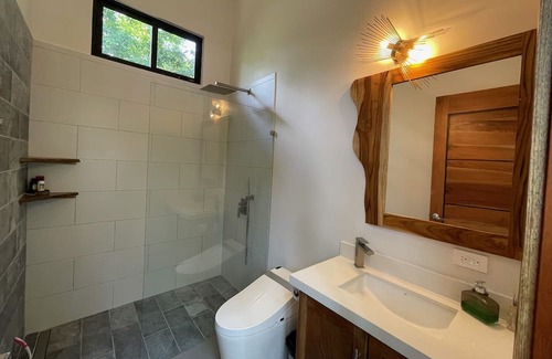 Luxury guest house on the Nicoya Peninsula, ideal for relaxing and reconnecting with nature. We are in a jungle setting 10 minutes walk from the local non-touristy secluded beach Playa Órganos with lots of wildlife to enjoy, including Howler Monkeys and Scarlett Macaws. Warm calm water, perfect for swimming and boogie boarding. Lots of extra’s- TV cable with channels in English, bidets in bathrooms, salt water pool, and outdoor shower, ice maker, black out shades and solar battery back-up power.