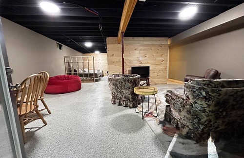 Down the hall are two bedrooms, the first bedroom has a queen size bed (sleeps 2), the second has a twin xl, and a twin with a trundle (sleeps 3). On the main floor you will also find a full bath with a bathtub/shower combo, the laundry room and access to the basement. The basement is partially finished, the owners will be adding additional items for guest as they work on completing it.