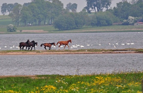 Cosy holiday development "Gollwitzer Park (Insel Poel)", surrounded by trees, meadows and fields. On the outskirts, in a quiet, sunny position, 600 m from the sea, 600 m from the beach, in a cul-de-sac, in the countryside. For shared use: property 12'000 m2 with lawn, meadow, lawn for sunbathing, natural pond. Table tennis, boccia (extra), children's playground. In the complex: WiFi, storage room for bicycles. Parking on the premises. Grocery 5 km, supermarket 5 km, shopping centre 5 km, restaurant 200 m, bakery 5 km, bus stop 100 m, sandy beach 600 m, outdoor swimming pool 18 km, indoor swimming pool 18 km, bathing lake 18 km. Minigolf 6.5 km, riding stable 7.5 km, walking paths from the house 100 m. Nearby attractions: Hansestadt Wismar 10 km. Please note: car recommended. The Gollwitzer Park consists of five two-storey apartment blocks with a total of 45 apartments, on the property is also a fenced natural pond.