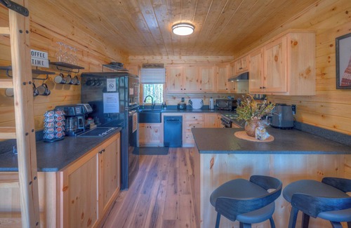 Escape to the Mountains of beautiful Murphy, North Carolina. A "Tiny Cabin" that is BIG on amenities, "Nikobear's Nook" offers you everything to make your mountain escape memorable. It's quite possibly the only tiny cabin offering a king-size murphy bed plus a double bed in the loft. A fully equipped kitchen with retro styled appliances including a gas stove, microwave, toaster and even an air fryer. A generous supply of spices and cutlery makes meal prep a breeze. Enjoy the custom tile shower with rain head + 8 body jets. A gorgeous electric fireplace provides ambiance and warmth on those cool mountain evenings. Entertainment is provided with a 58" Roku TV to stream your favorite shows and a blue-tooth sound system in the bath.