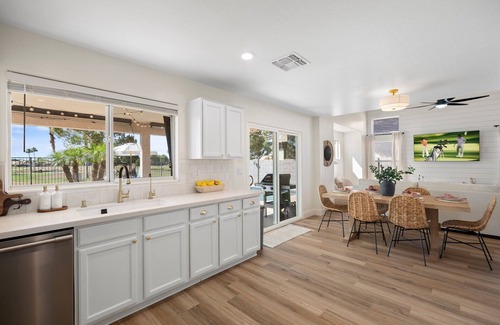 Newly Renovated! Our 4 bedroom, 3 bathroom home was recently remodeled in May 2023 and the space was carefully curated with our guests in mind. The perfect destination to get away and relax in the beautiful Arizona sunshine. The home sits on the 4th hole of Greenfield Lakes Golf Course. Take advantage of the outdoor resort style pool, golf course views, firepit, yard games and BBQ. Located in Gilbert with plenty of restaurant/bar choices. Top golf is just one mile away!
