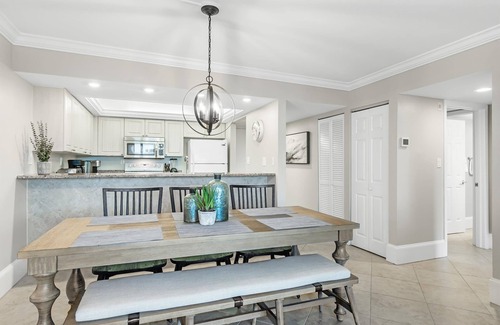 4. Living & Dining Area – Livingroom seats 6. New furniture in coastal décor, area rug, tile floors, 64" TV, books, puzzles, games, and things for kids are provided. The dining table seats 6.