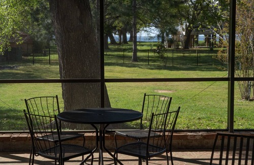 We just finished painting inside and out and adding a roof to the porch with a new sofa, lamps and rug. There are just 2 rooms, as well as the bathroom, the bedroom with king sized bed, and 42” television, with cable and wireless Internet. We only have one TV; there is no TV in the living room, kitchen area. If you would like a second TV bring your own. The main room, which serves as sitting room, dining room and kitchen, has a dining table seating 6 and a queen size sofa bed. Both rooms open onto a large screen porch (the former great room) ideal for enjoying relaxing drinks, and on cooler nights sitting in front of the wood-burning fireplace or generally sitting and admiring the garden, under the ceiling fans with a view to the gulf through ancient oak trees. There are lights on the two north corners of the house that illuminate when their motion detector is activated so you have light when you arrive and leave.