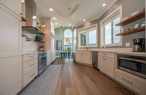 The elegant décor and attention to detail of Panoramic Pool Paradise will make you feel like you are walking into a high-end resort. Take in the views through the floor to ceiling windows as you relax by the fireplace in the great room. The kitchen is fully equipped with high end appliances and has plenty of seating for mealtime.