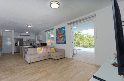 In our New Remodeled Infinity Pool House you will enjoy a peaceful relaxing atmosphere. We have a fully equipped kitchen, a family room with a sofa bed, a Tv and a breathtaking pool view. The Master Bedroom and one of the guest's rooms have a queen size bed. The third bedroom has a King size bed. To ensure a great night's sleep, all our mattresses are memory foam. In addition, all rooms have a Tv and a closet. The house also has a power generator and a washer and dryer included.