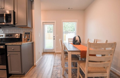Welcome to Paradise on the Plains, your home away from home in the heart of Auburn! This newly renovated townhome is less than 10 minutes from Jordan-Hare Stadium, making it the perfect spot for game day weekends, campus visits, or a relaxing getaway. With three bedrooms—two queens and one king—each featuring its own private en suite bathroom, you and your guests will enjoy comfort and privacy throughout your stay. A convenient half bath on the main floor adds to the ease.