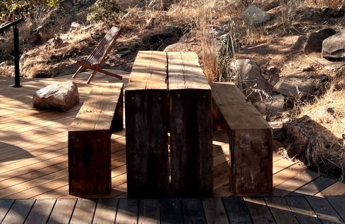 Paradise Ranch inn “off the grid” 50-acre riverfront luxury resort in 3Rivers California . Each house is fully furnished and equipped with a full kitchenette, bed, shower ,Japanese washlet all houses have their own private ozone infused hottub infusion, 2 saunas and 1 1/4 mile private river.
