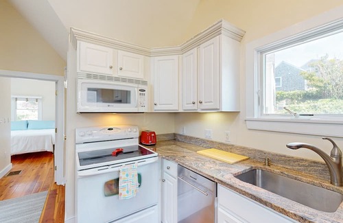 Escape to this charming year-round one-bedroom cottage in Truro, MA, nestled within the beautifully landscaped grounds of Stone's Throw Condominiums. Surrounded by tranquility, this well-maintained cottage offers a peaceful retreat for those looking to explore all that Truro and the Outer Cape has to offer. With skylights and vaulted ceilings, the interior is open and airy, creating a welcoming atmosphere for your stay.
