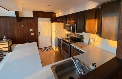 Recently upgraded and fully furnished throughout, this spacious three bedroom home includes a full kitchen complete with stove, oven, refrigerator, dishwasher and microwave. The main level of the home is perfect for entertaining. It offers a very spacious kitchen, living room and outdoor deck where the whole family can prepare a nice meal to enjoy while conversing in the open area. Guests enjoy HDTV, free WiFi, free onsite parking and private access.