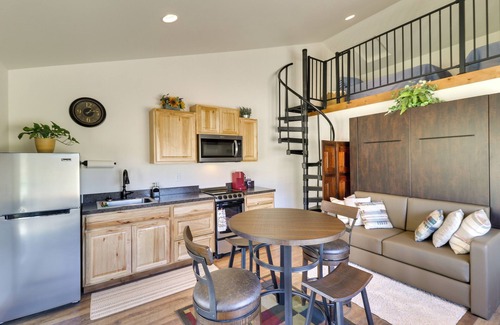 - NOTE: Although this is a single-story home, with a bedroom and bathroom on the main floor, a spiral staircase is required to access the upstairs loft