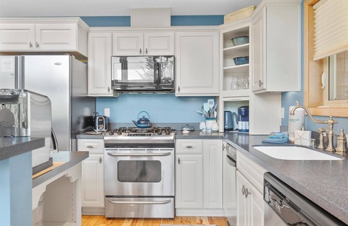 • Appliances: Fridge with ice and water dispenser, Propane stove, Microwave, blender, crockpot, rice cooker, waffle maker, pancake griddle, toaster, electric hand mixer.