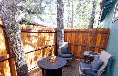 Pine Needle Retreat offers a serene, private patio area featuring a propane fireplace and seating. The home is just minutes from hiking and biking trails including one of our favorites Aspen Creek Trailhead.