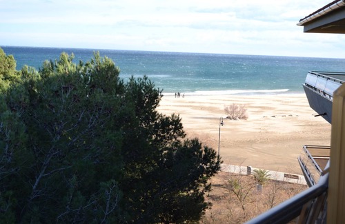 It is impossible to find a location even closer to the beach than with Pineda 247! The location of this spacious apartment is worth a 10, because it's located directly (!) at the beach; a towel, sun cream and a bucket for sandcastles are the only things you have to think about. The beautiful boulevard in front of your holiday apartment takes you to the cozy center of L'Estartit and its active port, all within a 10 minute walk! The apartment is located on the 4th floor, which ensures you a stunnig view over the Mediterranean Sea with de Medes Islands and thet vast nature from the two terraces. Surrounding the complex are many shops, restaurants and a large supermarket. Pineda 247 consists of an entrance hall, spacious lounge with dining area, TV (Spanish) and double sliding doors to the terrace, where you can enjoy the beautiful ocean view. The kitchen features a 4 burner gas hob, oven, microwave and large fridge/freezer. There are two bathrooms, one with toilet and shower and one with toilet and bath. The 2 bedrooms both have an entrance to the terrace, which has views over the nature reserve. One bedroom has a double bed and the other bunk beds, in the living room is a sleeping couch. Behind the apartment there is one private parking space available.Additional informationLayout bedrooms:Bedroom 1) 1x doublebed of (140 x 190)Bedroom 2) 1x bunkbed (2x single bed of 90 x 200) 1x sleeping couch (140x 200)Pets:Pets are allowed (after consultation)Cost: € 45 per pet/per stayHeating:No heating