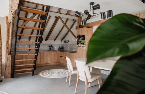 This cozy cottage in the middle of a nature reserve near Leenderstrijp in Noord-Brabant could easily be the base for your next holiday! The fantastic location offers something for everyone. You can completely relax there and you can even spot deer and (harmless) wild boars. By bike you can visit villages where time seems to have had no effect. You can also make nice trips to the nature reserve De Malpie, the Dierenrijk petting zoo, the Veldhoven animal park, the SpaSense wellness resort and Toverland Sevenum. From the house you can walk straight into Het Leenderbos; a wonderful place for a walk or a nice bike ride. The lively hustle and bustle of the city of light Eindhoven can be reached in no time. The cottage is accessible from the back, from the road via a garden path. Through the French doors you enter the living room / comfortable living room and modern kitchen. A sturdy staircase connects to the footbridge at the top that connects the two bedrooms. The bedrooms have 2 x single box-spring beds, atmospheric wooden beams, air conditioning and a large window. You can relax in the beautiful garden. This house is pet-friendly.