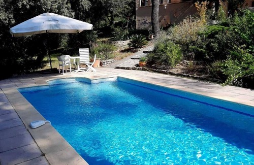 An ideal place for sunny holidays around a swimming pool in a green environment, within a village and a peaceful district in the north of Montpellier. Large flowered garden, not directly overlooked. Shaded terrace and barbecue. Pleasant view of an environment of pine forests and meadows. Two air-conditioned levels and living room. Indoor or outdoor car park depending on availability.