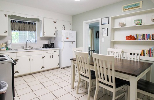 Though perfectly placed between beach and town, you can sit in this vacation home’s private backyard and enjoy time utterly to yourself. The property boasts a spacious yard (partially fenced) and good dogs are most welcome to vacation here too. Flowering trees and lush landscaping make it a welcoming haven, whether for reading a book or enjoying sea breezes on the covered patio. There is also a laundry area with a washer and dryer so you can keep those swimsuits dry!