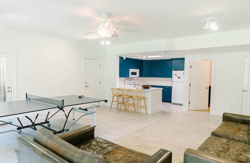 Relax with friends and family in this 6 bedroom / 4.5 bath waterfront property that sleeps 16. This home has 2 full kitchens, a hot tub, and a ping pong table. Kayak and SUP use included in your stay. Relax on the lake with lawn games, a hammock, and a fire pit. Come make some great family memories!