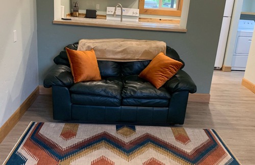 Kitchen with full size refrigerator, stove, microwave, coffee pot, toaster, pots/pans and dishes. Cozy living room with a smart TV. Full bath with walk-in shower. Two bedrooms - one with a king bed and one with a queen bed along with an addition queen futon located in the living room. Sleeps 6