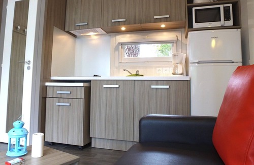 Holiday complex in the middle of pine forests, between the Bay of d'Arcachon and the Atlantic. The complex comprises a total of 195 cozy lodges, each with its own terrace. Various leisure facilities are available to guests, such as a communal pool, sports fields, table tennis, billiards, slackline and a playground for the little ones Seasonally there are animation offers for big and small. Arcachon Bay is only 800m away; it is about 8 km to the beaches of the Atlantic. Take a trip to the famous Cap Ferret lighthouse. Explore the area around the facility by bike or on foot.