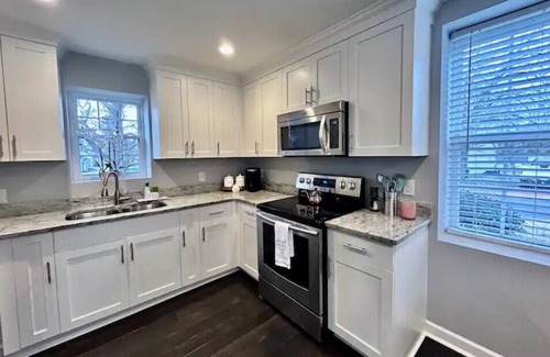 This newly renovated 3BR/2BA home is not only a relaxing place to unwind, but is also perfectly located for any need. This charming home is 3 min drive to Downtown Greer, it's shops, restaurants, & Greer City Park. 10 mins to GSP Int Airport, BMW, & less than a 30 min drive to Downton Greenville. Our home features a spacious yard, roof-covered parking, TV w/ Netflix, a fully stocked bathroom & a fully equipped kitchen.