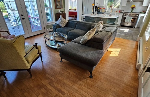 Three beautiful en suites all renovated and beautifully decorated. Full state of the art chef's kitchen, living room with large television and electric fireplace, dining room and private courtyard with grill and lush lawn with community firepit. Two bedrooms are upstairs and one is downstairs. Use of hotel amenities next door includes seasonal heated pool and second community firepit. Two night minimum. House cleaning fee is $150. One pet dog is allowed in the downstairs area only with a $35 post-stay cleaning fee. This is a no smoking property. Explore Rockland, Rockport and Camden and so much more.
