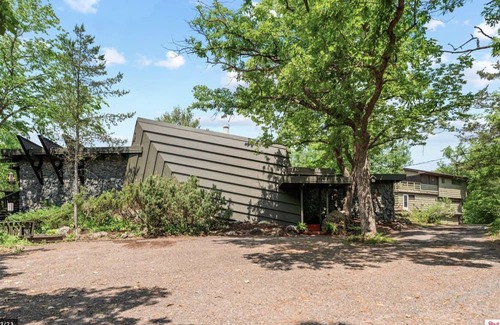 Mid-Century time capsule! Designed by Arthur Svendsen in the early sixties as his retirement home. This contemporary home sits just above the St. Croix River. The sublime interiors embrace the naturalistic setting. Floor to ceiling windows and enchanting outdoor spaces, perfect for entertaining or to take on the expansive view of the river and rock. This unique property is joined by a custom bridge to our other home listing with 2 bedroom / 2 bathroom.