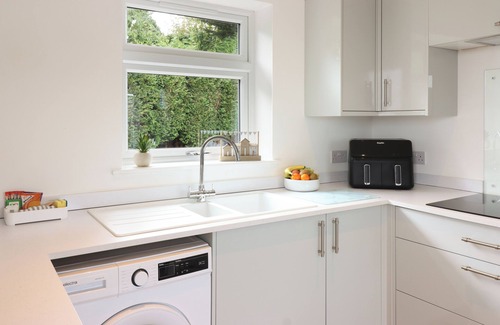 Kettle, Toaster, Air Fryer, Oven, , Hob, Microwave, Coffee Machine, Washing Machine, cups, plates, bowls, glasses, knives/forks/spoons, kitchen utensils, peeler, tin opener, pizza cutter, kitchen knives, full set pans, cooking trays, colander, measuring jug, chopping boards, plastic bowls, kitchen spray, washing up liquid, one tea towel, one scourer sponge.