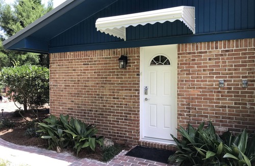 You are invited to stay at our cozy San Marco Studio: 3 private rooms consisting of a Bedroom (memory foam queen), Sitting Room/TV room with small kitchenette and your own personal bathroom. The HideAway is attached to a larger private dwelling, sitting on almost an acre in the middle of a large manicured lawn amid large trees and gorgeous landscaping. You are almost at the end of a cul de sac, one house from the St. Johns River. The HideAway has its own separate and completely private entrance through a gate at the end of the drive way. Every creature comfort is provided and none of your private space is shared. You may, however, enjoy the shared screened back back porch at your leisure or use the grill both of which are steps from your front door. One interior door is the common door but it is lockable from both sides. Enjoy sleeping on a serta icomfort brand new queen mattress and boxsprings (very similar to tempurPedic). The bedroom contains a closet (with terry robe) for hang up clothes or extra shoes or extra anything. Your own cable high definition TV with attached DVD with BluRay is in the large room which contains your private small refrigerator, microwave, toaster oven, Keurig coffee maker and sink. It is equipped with plates, dinnerware, glasses, cups and assorted accessories. A table can be used as a desk or a table for dining. The bathroom is recently remodeled with a new enclosed glass shower. The space is designed for one person but it is equipped to welcome two people. The large easy chair in the main room makes a small bed, rather like a sofa bed. All bed linens and towels are provided. What is unique about this space is the independent monitored security system with smoke sensor. You will be offered a key fob to arm and disarm as you come and go. A control panel snaps a picture every time the door is opened.