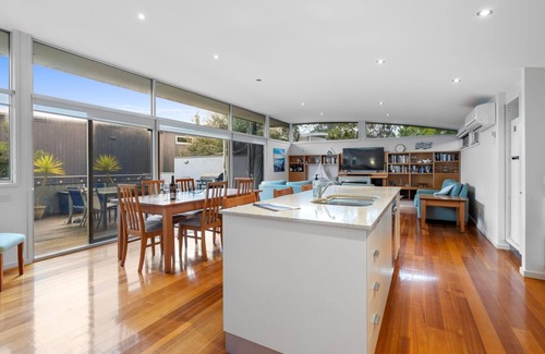 The fully equipped kitchen includes a large island bench, oven, stove, dishwasher and a range of utensils you need to prepare meals with ease. The living area is air conditioned with a wall mounted split system and features comfortable couches, a TV, and Wi-Fi, ideal for relaxing after a day at the beach. Step outside to enjoy a BBQ on the generous deck or unwind around the fire pit in the private backyard. Pets are welcome both indoors and outdoors, so your furry companions can join the adventure too! Please note that while the yard offers privacy, it is not fully enclosed. Please note: Inverloch Surf Club is seasonally patrolled.