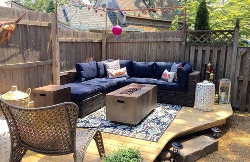 Location, Location, Location! Newly renovated charming cottage style home located in the sought after East Chop area of Oak Bluffs. Fabulous front porch for people watching and private backyard with wonderful area for al fresco dining. With 4 bedrooms and 2 baths, it can comfortably sleep 7 people . Walking distance to Circuit Ave. the active town center, Oak Bluffs Harbor, the beach and East Chop Lighthouse, its quiet location provides a nice contrast and retreat. This is a non smoking property. There is parking for two cars in the driveway. Sankofa Studio, our fabulous studio apartment is listed separately.