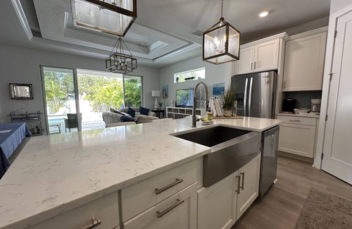 Brand new home that sleeps 6.and beautifully decorated. Resort feel stepping from living area to outdoor private backyard oasis. Shabby-chic retreat 3 bedroom 2.5 bath home with heated pool and tropical outdoor oasis with outdoor shower and total privacy. Lux spa like home just 1 mile from downtown Sarasota. Multi level home 2 bedrooms upstairs and full bath. This oasis is great for family vacations or a couples retreat to our beautiful Sarasota, Florida area. Just minutes from downtown Sarasota and less than 10 miles to Siesta Key. This family home allows you to truly experience the tropical lifestyle while only 10 miles from the soft sands of the Gulf of Mexico. The 3 bedroom 2 bath home is surrounded by palm trees and lush green vegetation which provides all the privacy one could desire. When you are not relaxing at your poolside paradise take a stroll to the downtown area to shop, dine or head out to the many sights to see in Sarasota area.