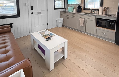 Escape to our cozy, one-bedroom cottage, perfect for a couple’s getaway! Thoughtfully designed with comfort in mind, this retreat offers all the essentials for a relaxed stay. The leather sofa provides a comfortable spot to unwind after a day of exploring, and the fully equipped kitchen makes mealtime a breeze. Enjoy all the comforts of home, including free parking and access to a community pool for a refreshing dip.