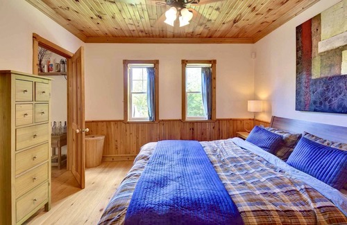 Relaxe at our beautiful 5 bedrooms lodge on the lake with much privacy and far from the road. Enjoy the use of the second building on our huge land with a Ping Pong Table, a Soccer Table (Babyfoot) a small gym and some music.