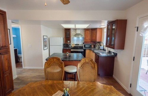 Clean, classic & pleasant retreat. 10 minutes to Horseshoe Bend, or Antelope Canyon. We'd like to welcome you to enjoy the luxuries of Sol Oasis & unwind in our newly redesigned home. Grill at sunset & have an outdoor meal before heading in to our 4k surround sound TV, play pool or darts, and finish on your tempur pedic bed. Only 10-minute walk to downtown supermarket/restaurants & the golf course/mesa trail. Fast WIFI , new washer/dryer & plenty of boat parking w/ security cameras, and TV's in the mess, basement & master.