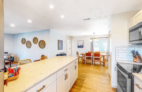 Back at your home away from home, enjoy the company of your loved ones from modern and spacious living quarters. Lounge in the open floor plan living room while tuning into a movie on the adjacent large TV. Or, play chef in the full kitchen as you prepare a delicious culinary treat for your loved ones. Enjoy the fruits of your labor at the breakfast bar, formal dining table, or alfresco in the spacious shared outdoor space.