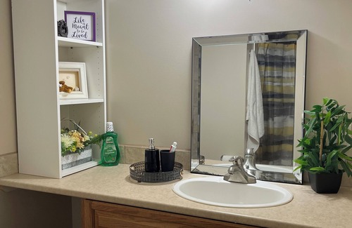 Hey there! Just wanted to give you the lowdown on the room. It's a cozy basement suite with its own bathroom, separate fridge, and wifi. Parking's free, and while the kitchen's upstairs, it's fully equipped and ready for you to make yourself at home. This space is perfect for solo travelers, couples, or business guests looking for a relaxing stay. Highlights include: