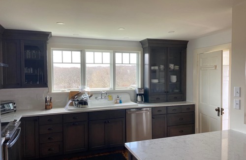 Bring the kids and dogs for a fun relaxing stay in the secluded Aquinnah end of Martha's Vineyard. Our home is rustic and decorated in a "shabby-chic" style with many antiques mixed with Pottery Barn. It is located out at the far and secluded end of the island, so if rustic and quiet with an AMAZING WATER VIEW is what you are looking for, then you've found the right house! Newly renovated kitchen, fully stocked with all the amenities and windows all around to see 180 degree view of ocean! 4 bedrooms (2 w/ queens, 1 w/ 2 twins, 1 w/ 3 twins & trundle), 1 full bath upstairs, 1 half bath downstairs, outdoor hot shower, and private tennis court. Enjoy the private beach just a 3-minute walk down a grassy path and stairs where you can roast marshmallows on a campfire, fish for blues and stripers, and swim in the crystal clear water, or simply relax on the deck overlooking amazing sunsets over the ocean.