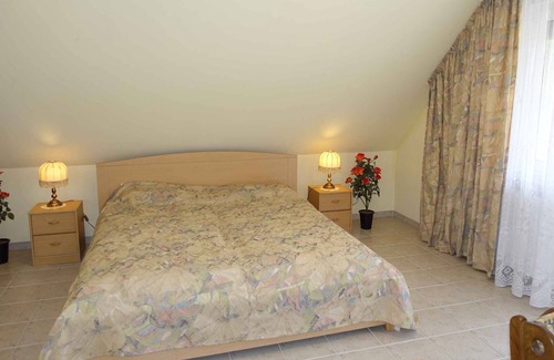 The studio is located in a detached house, built in 2000, renovated in 2017 and is rustic furnished. The property is located on the outskirts. The domicile is also popular because of the quiet and sunny location. For common use are available: parasol, grill possibility, garden furniture, hollywood swing and court.LocationHévíz. The studio is located on a 50 sqm, closed garden plot with meadow and bushes, limited by a fence. The landlord lives permanently in the house, but uses a seperate entrance. The access goes via a side road (asphalted). Parking lot (for 1 car) on the property and the street in front of the house. Specialair conditioner, central heating (gas). Facilities: internet access (WLAN) and iron. TV reception takes place via satellite. Programs in German and English can be reached. Dogsnot allowed. DistancesShopping opportunity 1 m, restaurant 5 m, town center 2 km. thermal bath in Hévíz 2 km.In summer: Balaton 2 km in Hévíz. Hévíz: horse riding 3,5 km and tennis 4 km. golf in Kehidakustyán 13 km. Vineyard is only 100 m, small train Lilliput runs in front of the house, and takes you to the vineyard tour. You will find a number of wine cellars and restaurants on the mountain with a beautiful panorama of the surroundings. DivisionStudio, 1 floor, 1 rooms, 30 sqm, in total 2 beds. Smoking is prohibited in the property. RoomThe entrance in your studio is located on the 1st floor and leads over an internal staircase directly in the vestibule. Living/bedroom with 1 double bed, TV and access to the terrace (20 sqm, covered, garden furniture, 1 table, 2 chairs, parasol). Cooking nook in the living room / bedroom with dining area (2 seats), electric stove (2 plates), fridge (120 l, icebox), microwave, coffee machine, toaster and electric kettle. Bathroom with shower, 1 sink, WC, hairdryer and window. Terms of lease and pricesIncluded in the priceinternet access, air conditioning, parking place, electricity, water, heating, final cleaning, bed linen, high chair - please order at booking, Wireless Internet access, baby cot (please order at booking). Side costs-Additionally(Payable when booking)/local tax.Deposit:No deposit.
