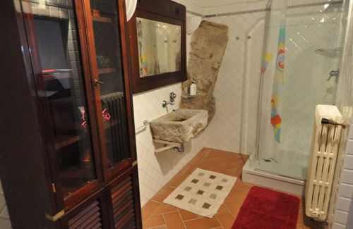 Marciana is a medieval town with no traffic whatsoever. The apartment is a cozy and tastefully furnished studio apartment in the historic pedestrian center of Marciana. The room is illuminated by a French door and a window, and contains a double bed, a foldaway wardrobe carved into the wall, a reading corner with table and armchair and a kitchenette. There are electric cookers, refrigerator, hot water boiler, electric kettle.