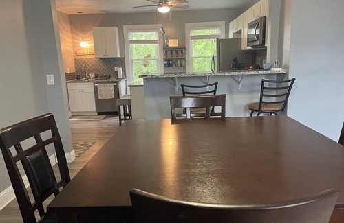 Upstairs apartment newly remodeled. Really safe area all around. Granite counters, stainless steel appliances and even an air fryer.